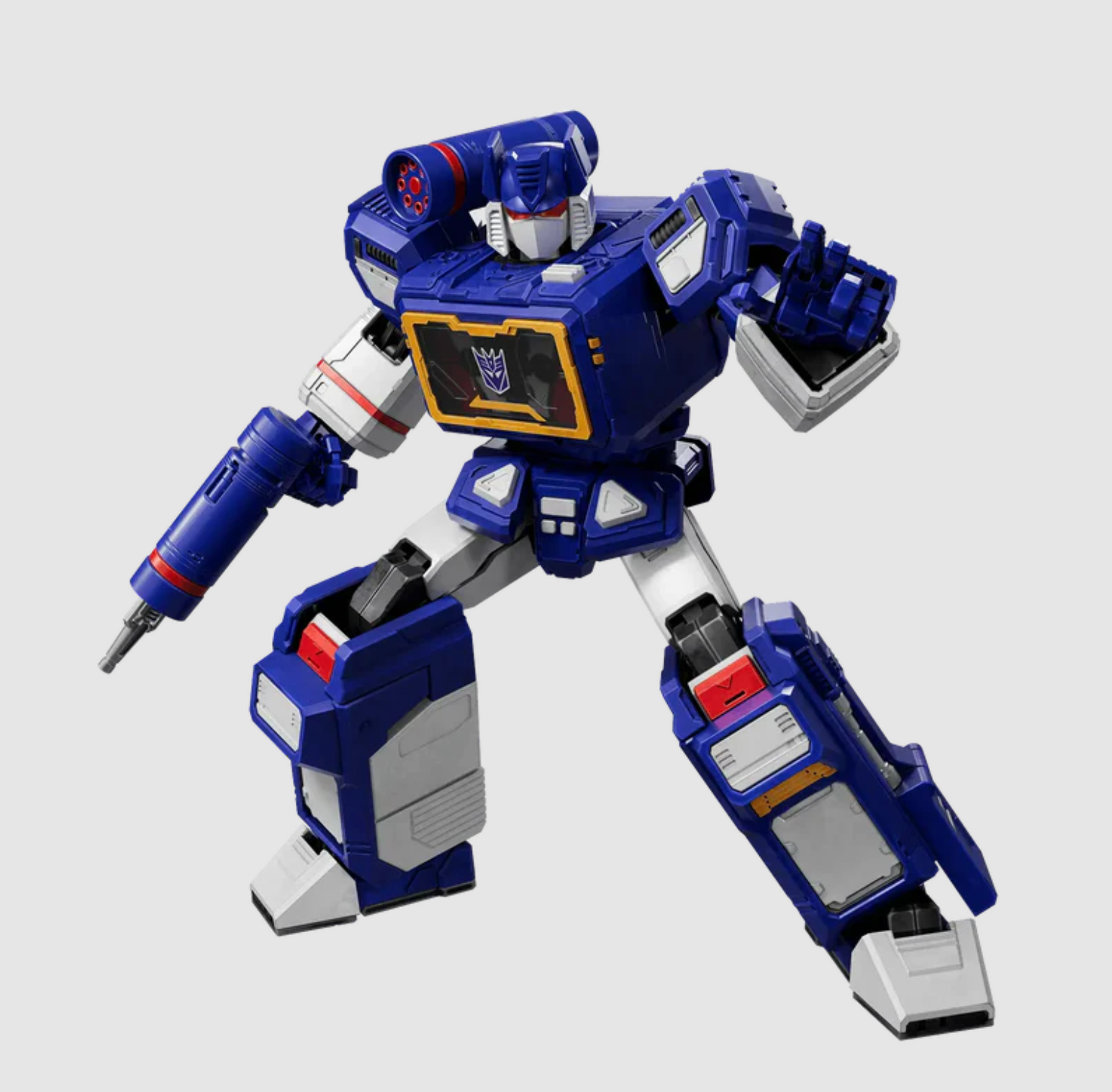 Standout features include opening chest compartment, fully movable fingers, clever weapon storage, and premium engineering details that make this the ultimate Soundwave for collectors.