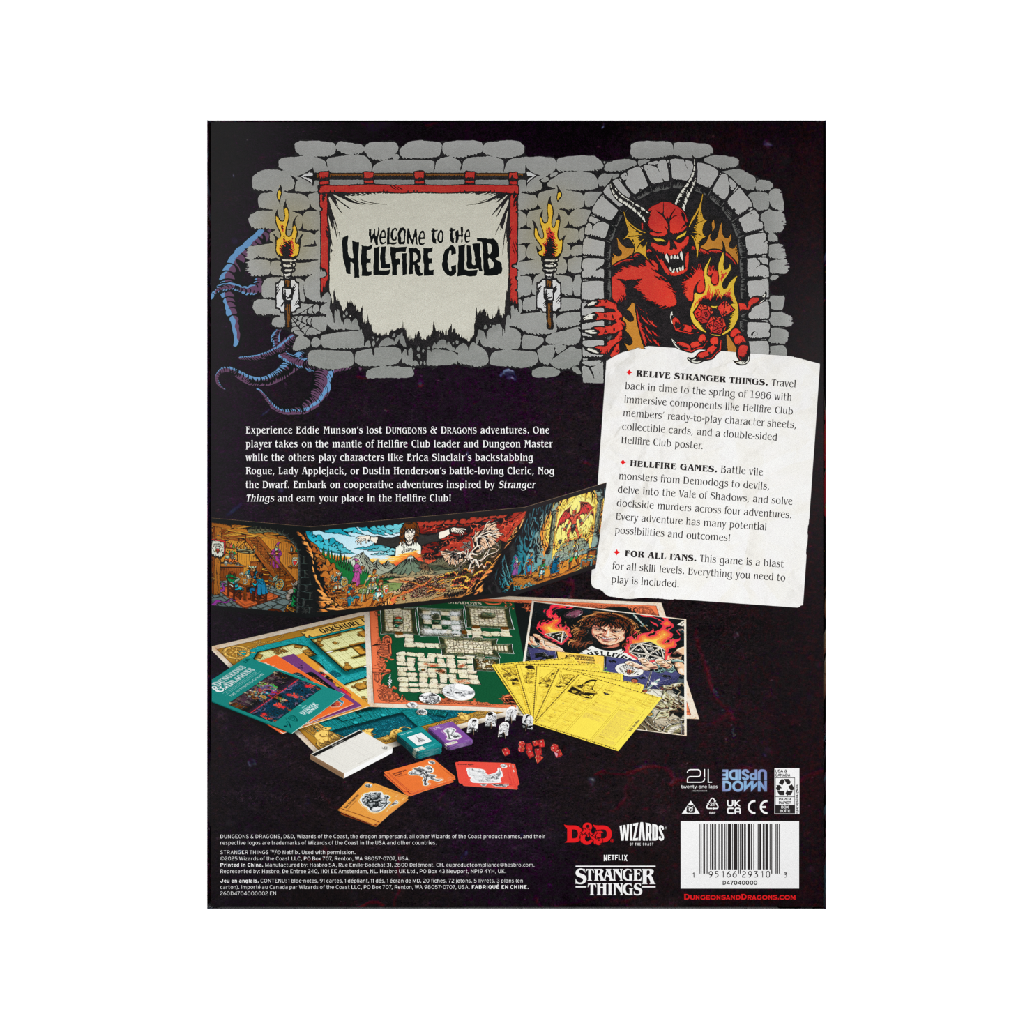 - FINISH THE CAMPAIGN—The Hellfire Club was born in Eddie Munson’s basement—a haven for outsiders, free spirits, and dice-slingers. But his final campaign was left unfinished... until now. Keep the flames of Hellfire burning in this collaborative 3–5 player game.